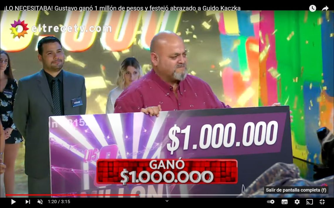 Finalmente, luego de una final “cabeza a cabeza”, el vecino de Villa La Florida se consagró ganador y nuevamente rompió en llanto. Antes de agarrar el cheque, se fundió en un abrazo con el conductor, que luego contó su historia de vida: "Ahí está entonces, el ganador del millón de pesos. Gustavo Flores. Crió a su sobrino desde los seis meses, porque su hermano, bueno, tuvo un accidente, esto es lo que escribiste, lo que contaste, que seguro es todo lo que andás recordando, un accidente que tuvo el hermano y él está con su hijo porque falleció" relató el conductor, mientras Gustavo lo escuchaba emocionado y recordaba a su hermano.