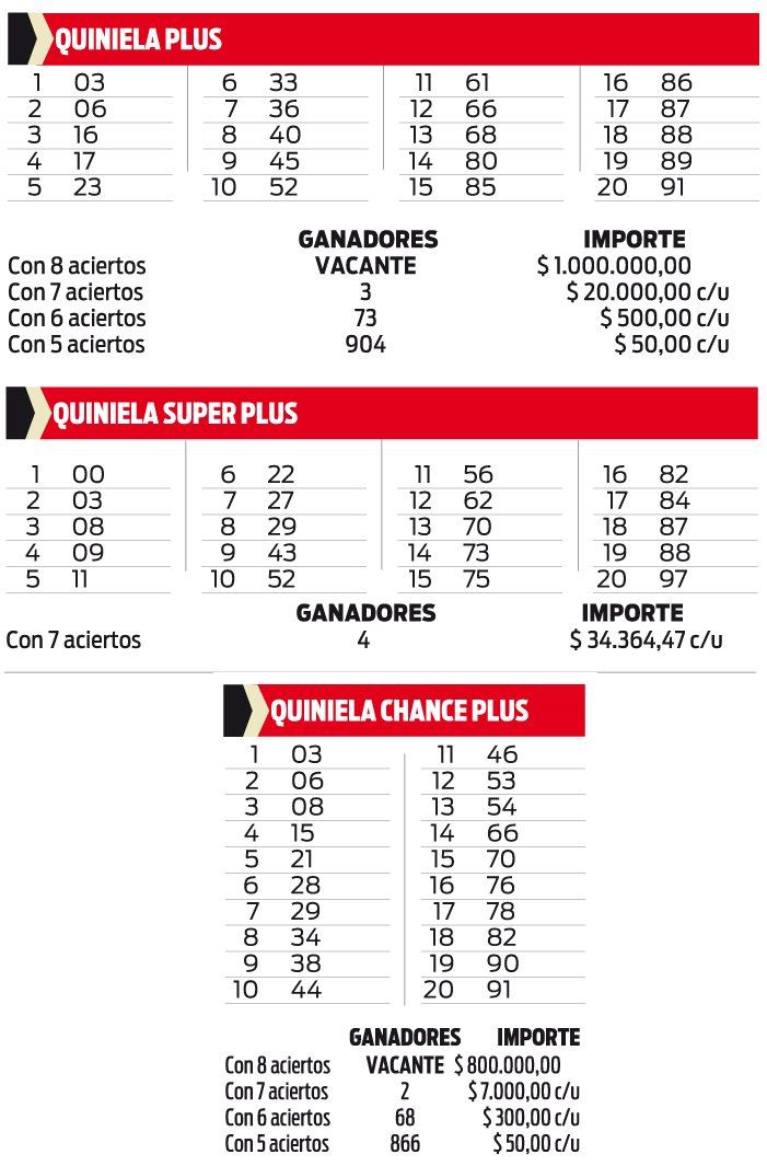 QUINIELA PLUS, SUPER PLUS Y CHANCE PLUS
