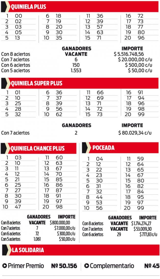 QUINIELA PLUS, SUPER PLUS Y CHANCE PLUS - POCEADA Y SOLIDARIA