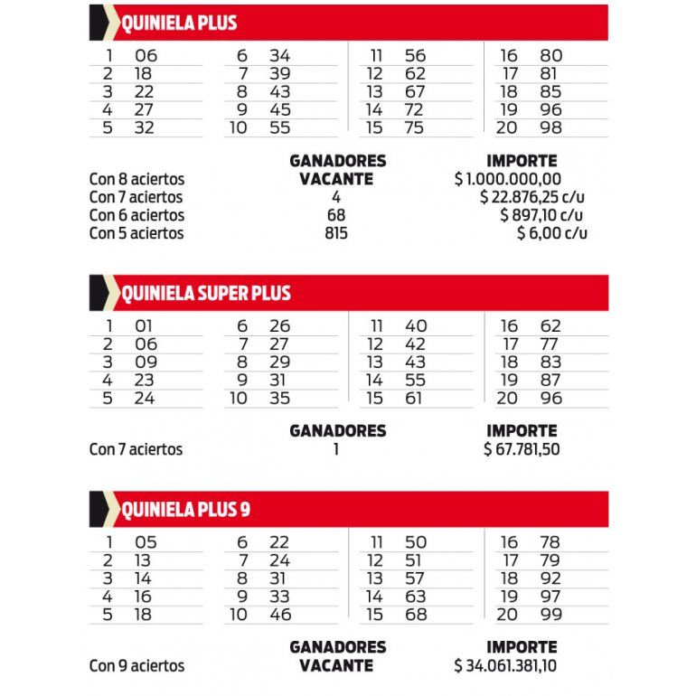 QUINIELA PLUS, SUPER PLUS Y PLUS 9