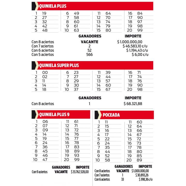 QUINIELA PLUS, SUPER PLUS Y PLUS 9 - POCEADA