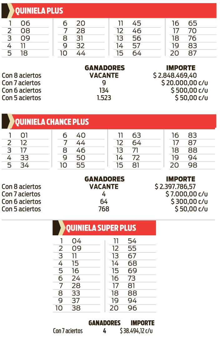 QUINIELA PLUS,SUPER PLUS Y CHANCE PLUS