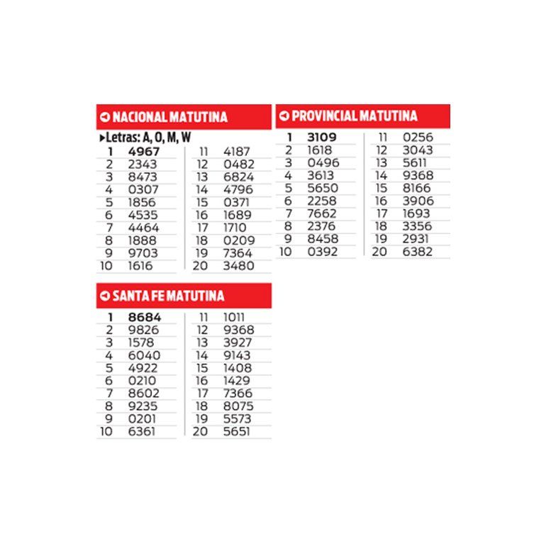 Quinielas Nacional, Provincia y Santa Fe matutina