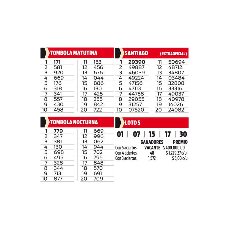 Quinielas Tómbolas, Santiago (extraoficial) y Loto 5
