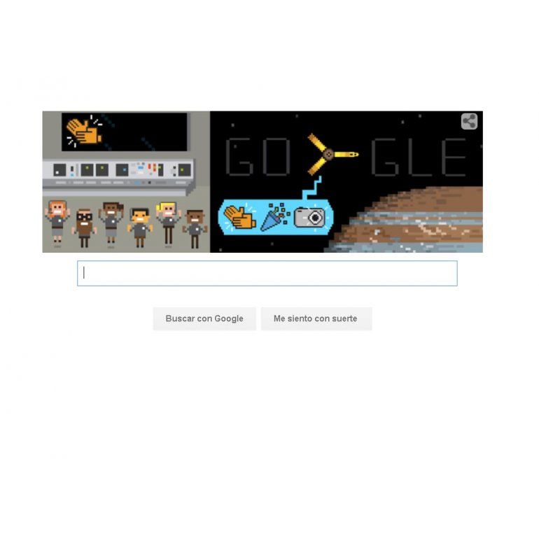 Cinco años después de su lanzamiento, la sonda Juno de la NASA se puso anoche en órbita alrededor de Júpiter en busca de desentrañar los misterios del planeta más grande del sistema solar, escondidos bajo una espesa capa nubosa. El buscador Google celebró el hecho este martes con un divertido doodle de su autoría.
