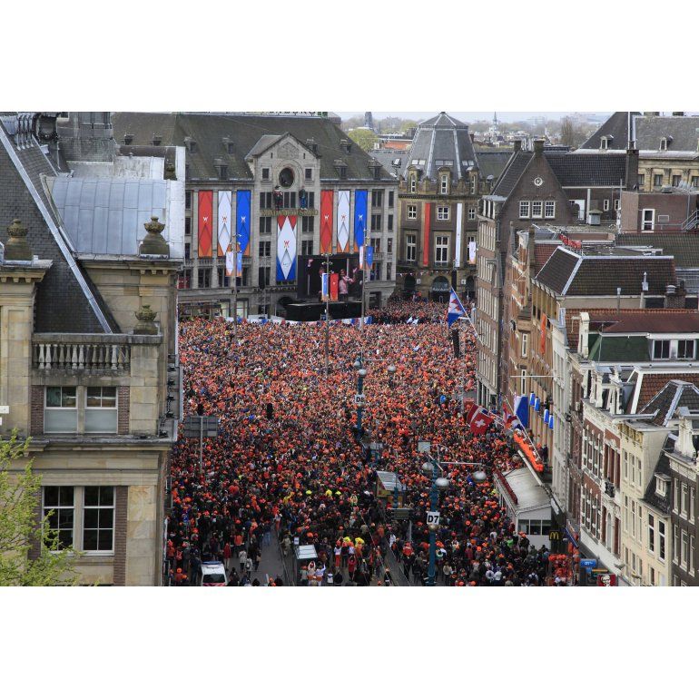La multitud transmitió una inocultable alegría popular que se reflejó también en los miles de disfraces que predominaban la céntrica plaza de Amsterdam: gorros al estilo de los bufones, banderas, camisetas y todo lo que pudiera identificarlos con los colores de la bandera holandesa y, sobre todo, con el naranja de la Casa Real.