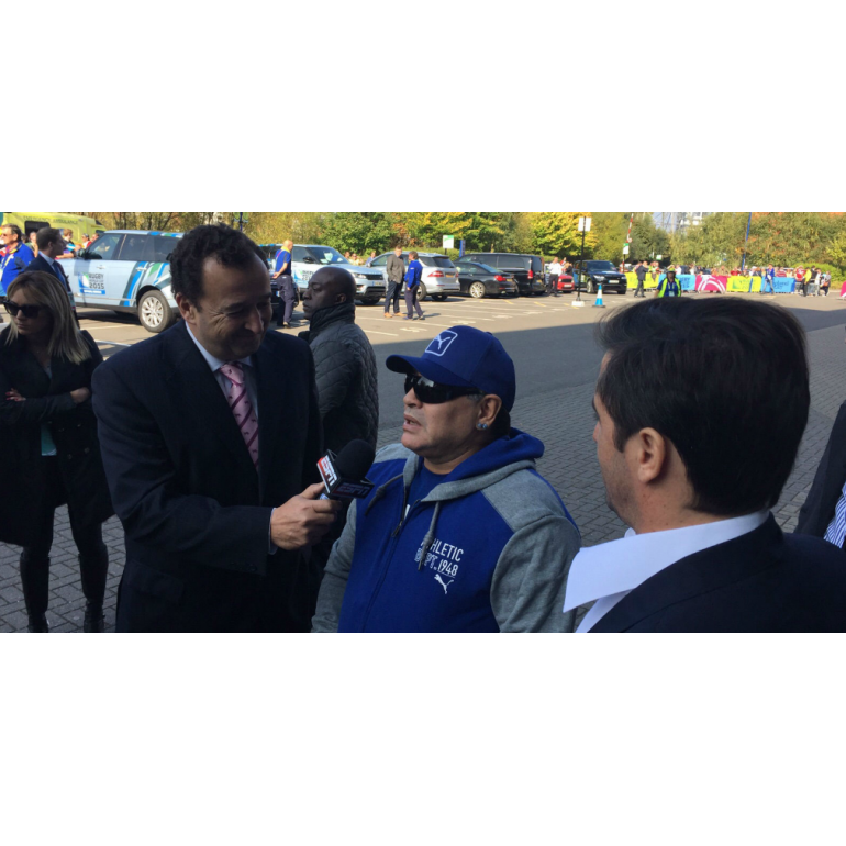 En un mano con ESPN, el ex futbolista se mostró junto a Agustín Pichot, quien lo convenció para que estuviera en el partido clave de la Selección argentina: "Me llamó mi amigo Agustín, agarré a Rocío (Oliva) a Matías Morla (su abogado) y nos vinimos para acá. Nos tomamos el primer avión que había".