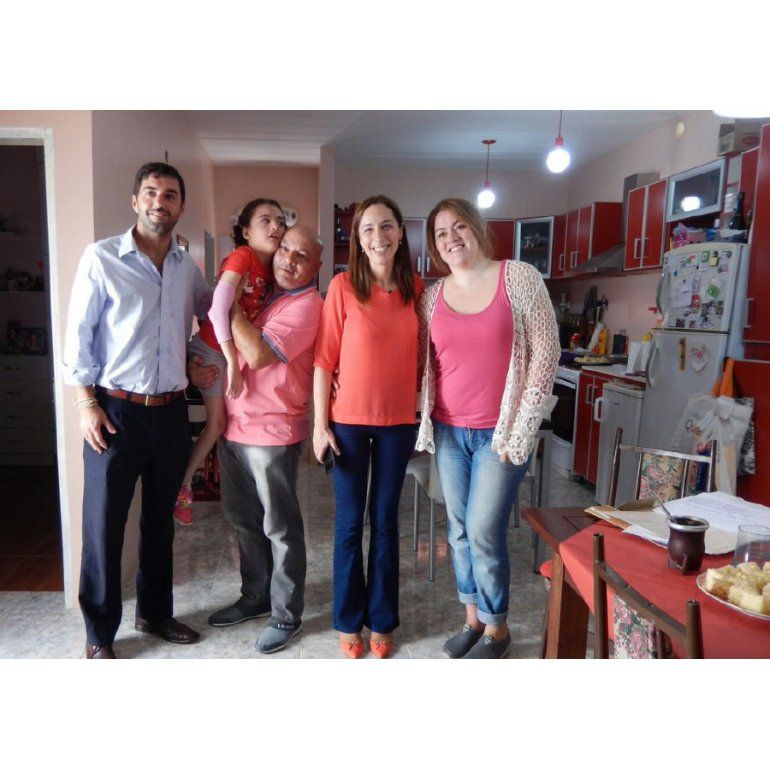 La gobernadora bonaerense, María Eugenia Vidal, visitó las obras del plan de viviendas del programa Procrear en Canning, Ezeiza, donde visitó a la familia de Micaela, una niña de 9 años, que necesita realizarse un tratamiento con células madre en China para tratarse una parálisis cerebral.