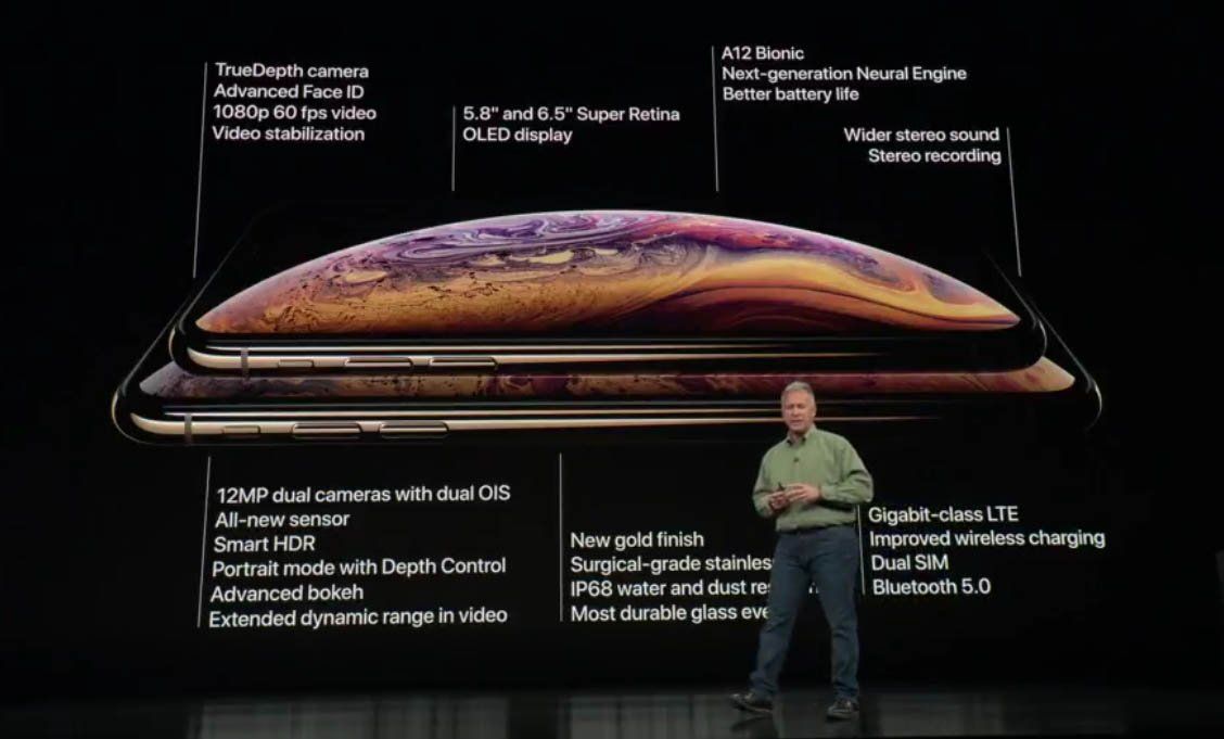 El primero en ser anunciado fue el iPhone XS, con una pantalla cubierta por un nuevo tipo de cristal, protección especial ante líquidos, y disponible en dorado, plateado y gris.