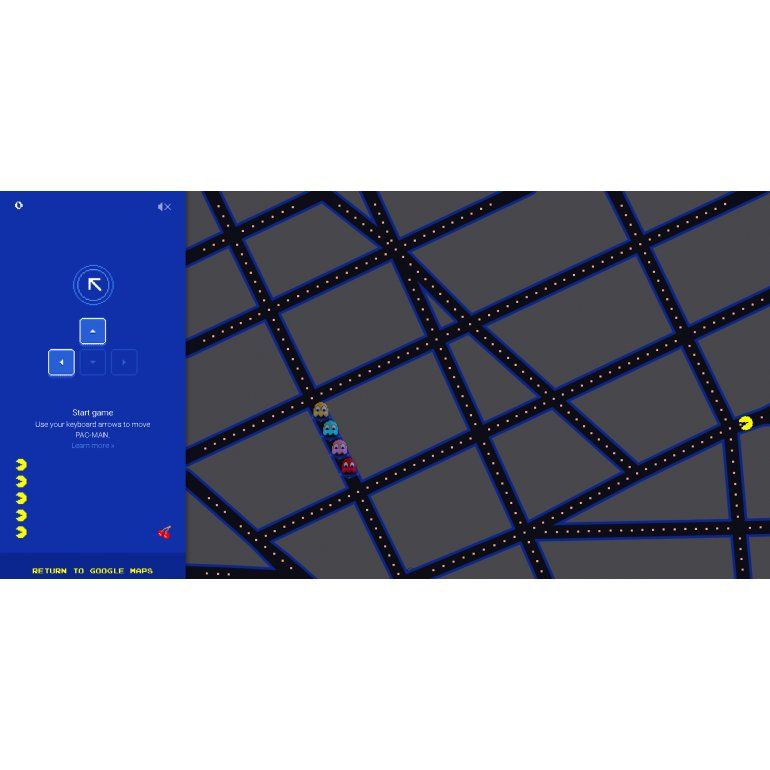 La función en Google Maps permite a los visitantes dar click en un símbolo de Pac-Man abajo a la izquierda de la pantalla para activar el videojuego en cualquier lugar que se teclee en la barra de búsqueda. Como sucede desde hace casi 35 años, Pac-Man se come los puntos amarillos mientras trata de huir de los fantasmas Pinky, Blinky, Inky y Clyde.