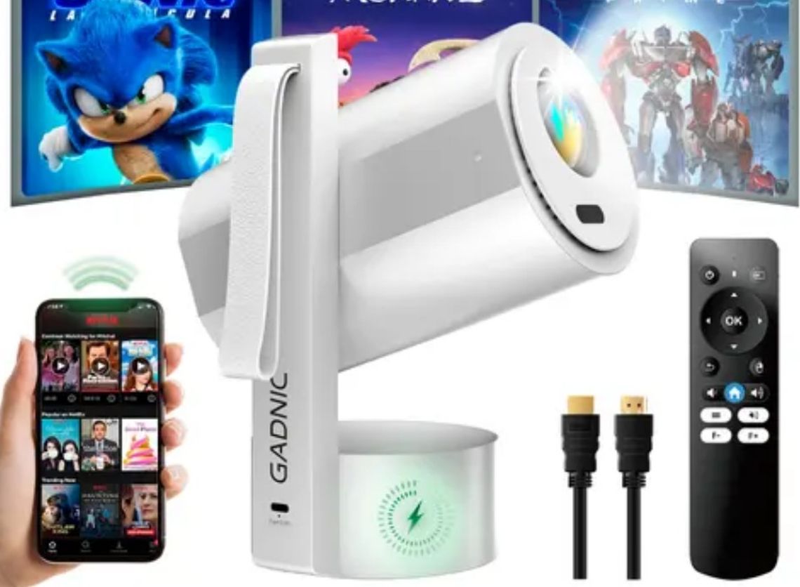 Para quienes buscan la experiencia más completa, el Gadnic C45 es el modelo más equipado de la línea: resolución 4K nativa, 12.000 lúmenes, Android TV, WiFi 6, Bluetooth 5.4, altavoz de 30W y proyección de 35 a 200 pulgadas con throw ratio corto de 1,22:1 que permite pantallas grandes desde solo 1,5 metros de distancia. Viene con bolso transportador y cable HDMI de 15 metros incluidos, pensando en quienes quieren instalarlo cómodamente para ver el Mundial en pantalla grande sin compromisos.