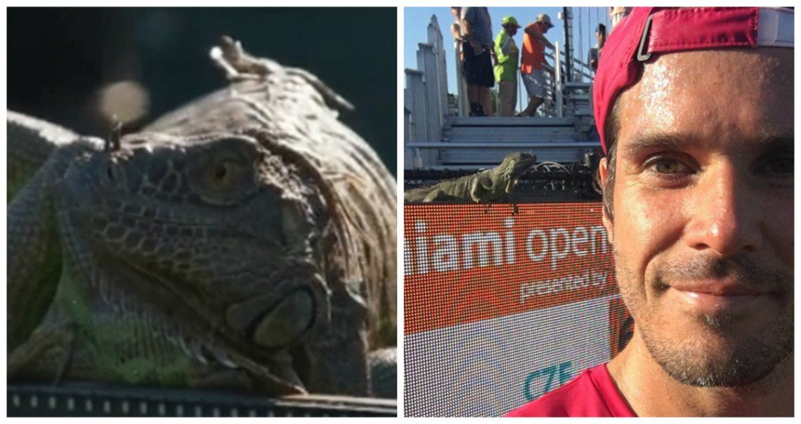 En pleno peloteo entre los jugadores, una iguana de importantes dimensiones se coló dentro del campo de juego y eludió a todo aquel que intentara atraparla.