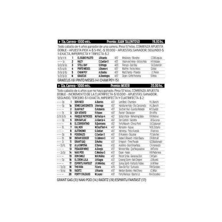 Programa carreras 11 y 12