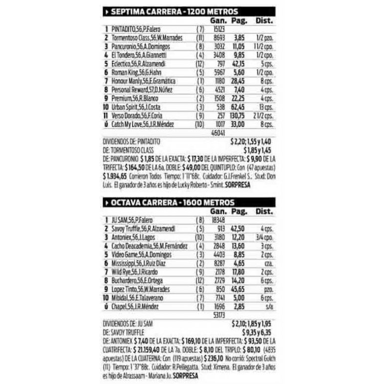 Resultados carreras 7 y 8