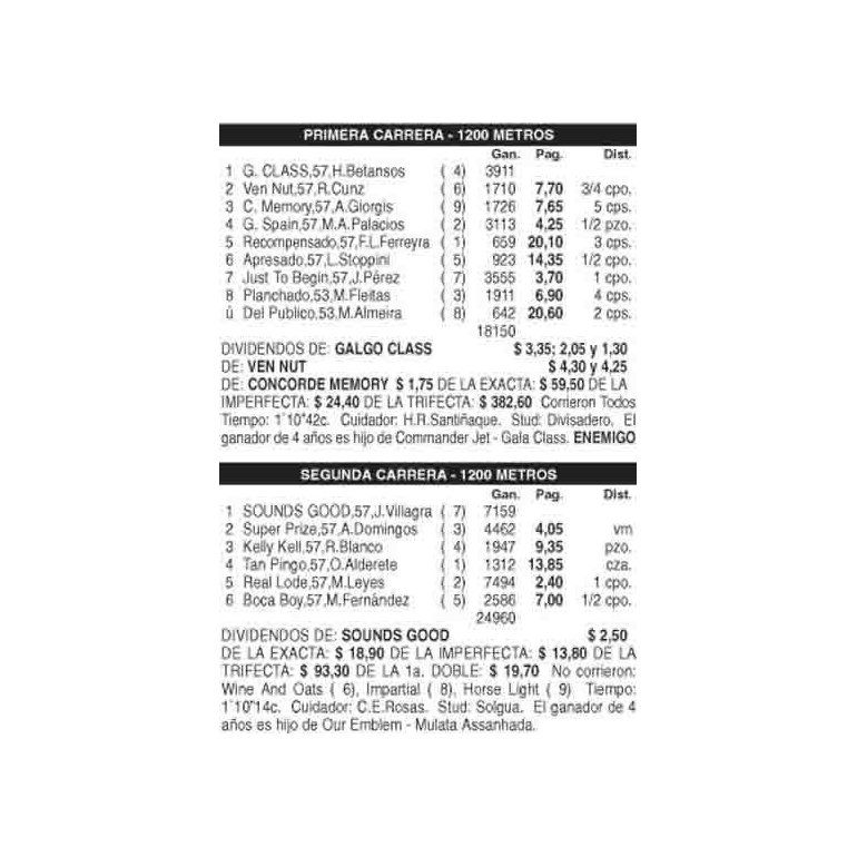 DE AYER EN SAN ISIDRO Reunión Nº 71 - Pista Normal