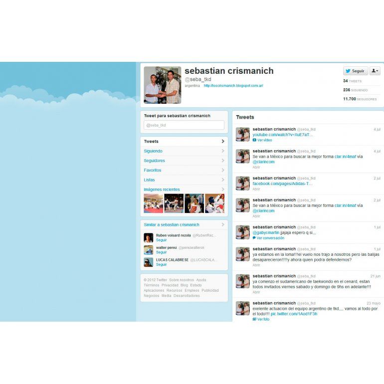 La cuenta del correntino, @seba_tkd, tenía 2.500 seguidores a primera hora del día. Ya entrada la noche, y luego de su conquista en Londres 2012, la cantidad había subido a 11.700.