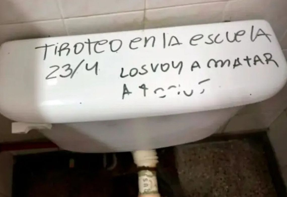 El fenómeno, que en las últimas horas sumó nuevos episodios en establecimientos de la Ciudad de Buenos Aires, la Provincia, Córdoba, Santa Fe y Río Negro, entre otras jurisdicciones, presenta un patrón común: mensajes intimidatorios que advierten sobre supuestos ataques armados, muchas veces con frases como "mañana tiroteo" o "no vengan", que aparecen en paredes de baños, redes sociales o grupos de mensajería.