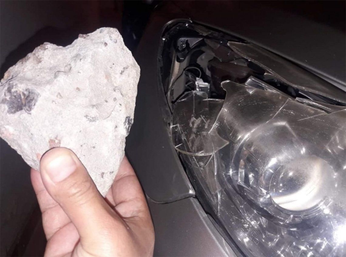 “Me tiraron una piedra en el auto. Pegó en la óptica de casualidad, pero si pegaba en el vidrio me mataba”, detalló el conductor a través de una publicación que se fue viralizada rápidamente por decenas de usuarios en pos de alertar a otros automovilistas.